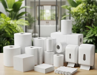 Papel Higiénico y Toallas interdobladas, despachadores de papel